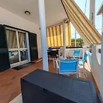 在露台上可看见街道景致. Casuzze House别墅的海滩设施包括沙发床 和太阳伞.